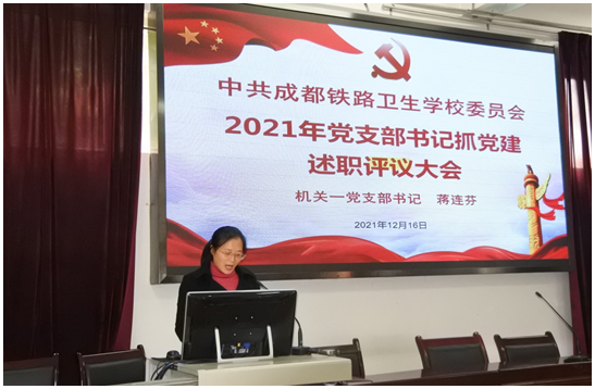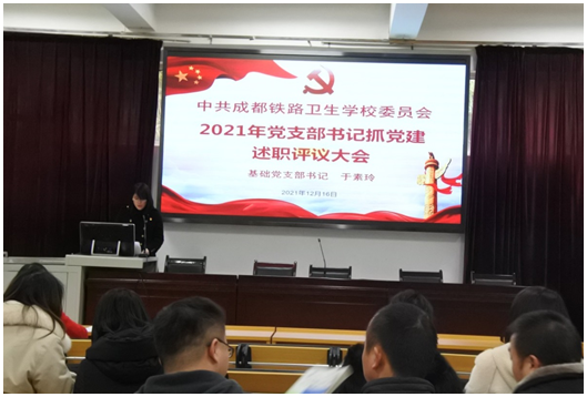 按照上级党委工作部署和要求,学校落实全面从严治党,强化党支部建设,2021年12月16日下午,成都铁路卫生学校2021年度党支部书记抓党建述职评议大会在北辰楼101会议室举行。