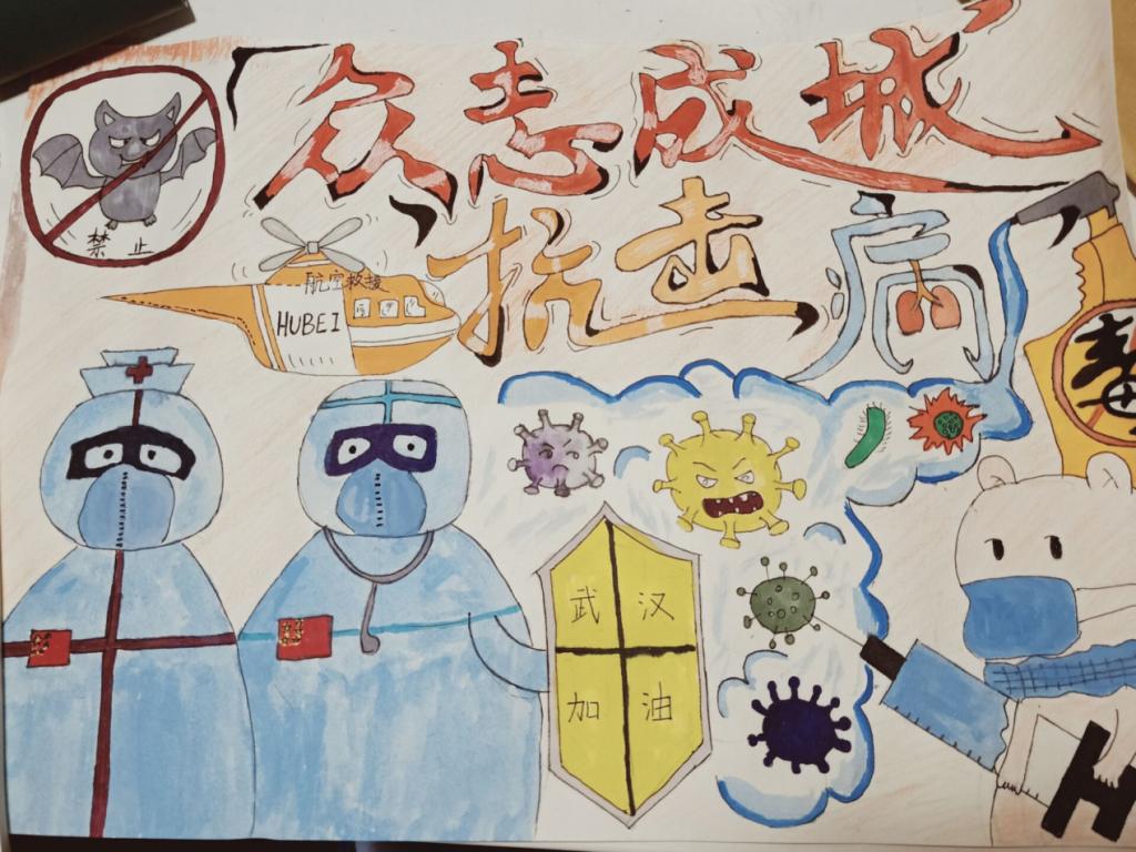 积极倡导学生围绕居家抗疫期间的所看见、所学、所思、所悟、所做行,拍摄短视频、制作手抄报、绘画、书法、征文演讲等,以多种形式积极投身参与疫情防控宣传行动。