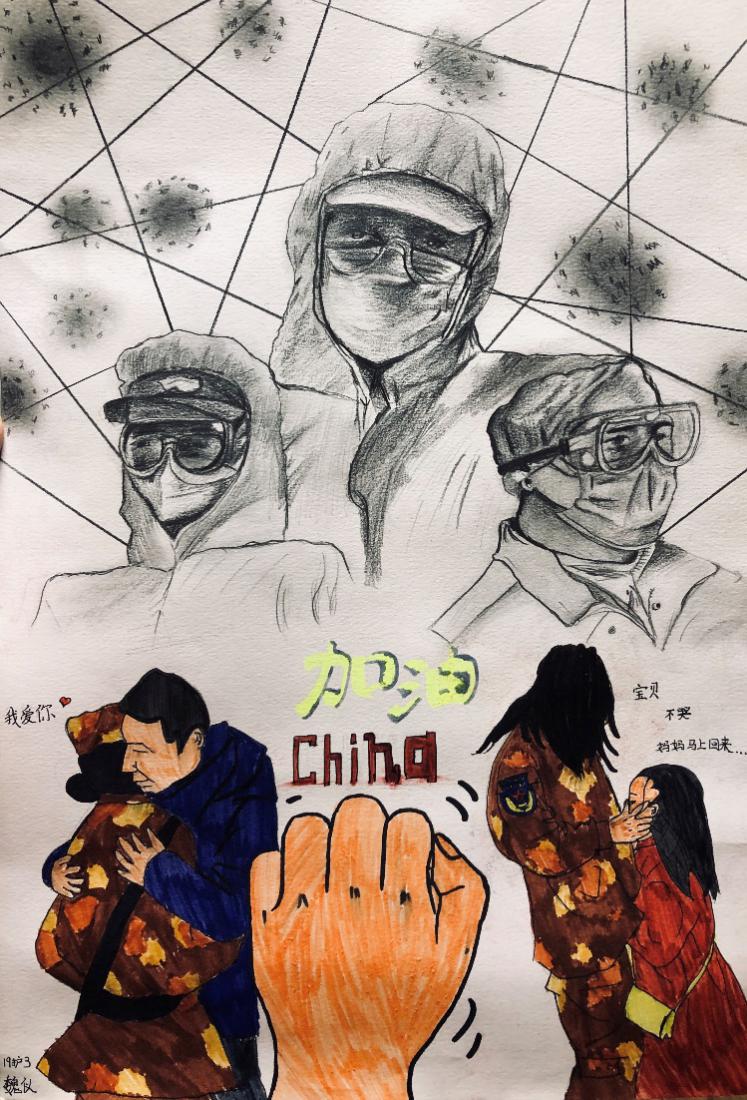 疫情防控期间,引导学生关注灾难,珍视生命,培养学生系统地认识和思考问题的能力,激发学生内在的成长动力,组织开展“我想——以笔为刃”专题探究活动和“我能——巧手防疫”科学探究活动,鼓励学生结合自身专业特色,充分发挥自身特长。
