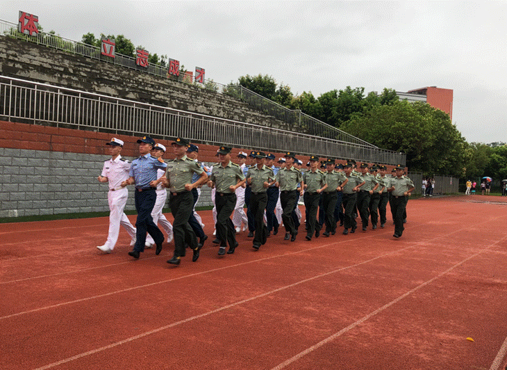 紧接着,作为入学教育系列活动之一的爱国主义国防教育正式开班。教官们跑步入场,全体学生根据班级进行编队。同学们将在往后一周接受相关训练以及寝室内务整理指导。