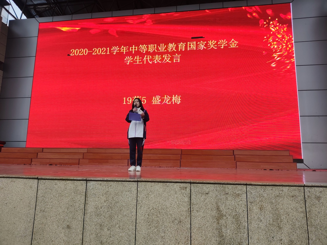 获奖同学代表盛龙梅发表感言,感恩学校、社会、国家,并将继续刻苦钻研、奋力拼搏,不负青春。家长代表讲话也表达了对所有学生的期望,希望广大学生向她们学习,珍惜荣誉,坚定梦想,自强不息。继续发扬学校“博学、笃行、仁爱、惠众”的校训精神,勤学惜时、奋力拼搏,乘梦飞翔。