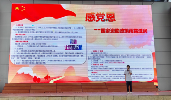 活动前期通过黑板报评比、晨会宣讲、视频制作、主题班会等方式进行宣传教育。围绕国家资助政策体系,学生结合自身体会及感悟,讲述自己感党恩、助成长的成长历程,活动体现了受助学生的感恩情怀及努力奋斗精神。希望全校学子将感恩这种力量及精神及时传承回馈于他人及社会。