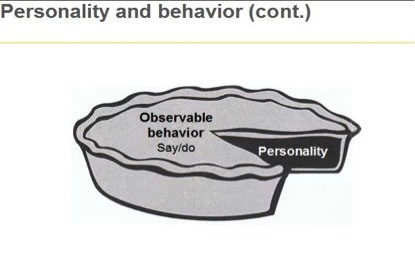 我们讲的社交风格不是一个人的性格,也不是星座、血型之类的。上面这个饼图最外层是你能够被别人观察到的:说了什么、做了什么以及如何说、如何做的,即社交风格Social style。而里面那层别人看不到的核心才是人格、性格、动机等等。