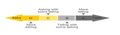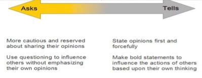 Asks:委婉,习惯用问的方式来表达观点。语速比较慢,讲的话相对少,声音不是那么洪亮,声音不会特别响,手势、肢体语言和眼神接触相对比较少