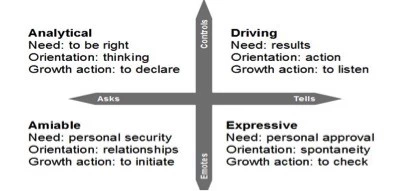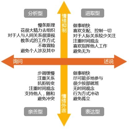 3、把横轴和纵轴综合起来,每个象限说话和行为方式的特征