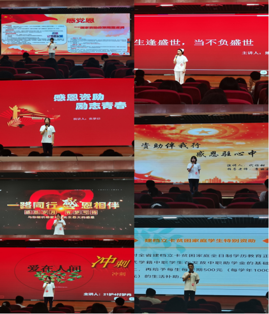 前期,通过层层选拔在105份初赛作品中,共30份作品入围决赛。经学生资助工作办公室及各年级推优评选,共有13名同学进入现场决赛。参赛者围绕学生资助政策体系,结合自身体会与感悟,讲述自己及身边人在党和政府的关心关爱下知恩感恩、成长成才的故事,演讲激情洋溢、绘声绘色,深切表达出自己对党和国家的感恩之情。
