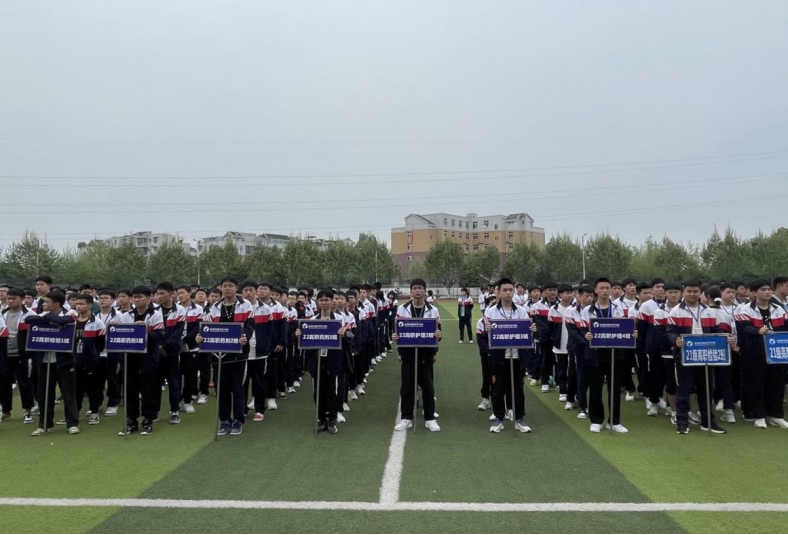 2023年4月10日下午,成都铁路卫生学校学生科组织学校全体男生在操场开展以“践行二十大精神,争做新时代优秀医护生”为主题的男生专题例会。